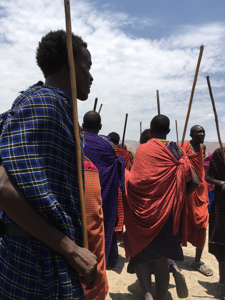The Maasai are what you might imagine as the tribal ‘face’ of East Africa. Their brightly colored cotton capes called Shúkà replaced animal skins in the 1960’s. We gathered the red cloth was for younger individuals and blue for older members.