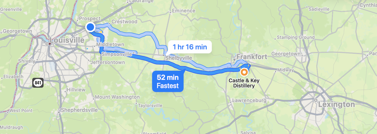 | Castle & Key | Frankfurt | 1 hour | The Distillery Experience | $30 | 4445 McCracken Pike Frankfort, KY 40601 | bar only |