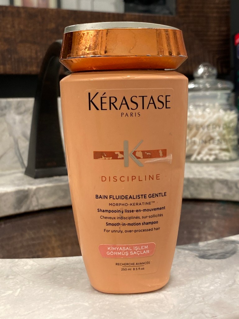 KERASTASE Discipline Bain Fluidealiste Shampoo | Smoothing Anti-Frizz Shampoo | Sulfate-free | For All Hair Types I. love. this. brand. In the past, most shampoos would leave my scalp oily after too much use. This product rarely does that. I also pay to get my color done at a salon so using a product that protects my hair in between washes is important too. It’s a great investment and only requires a small amount each time.