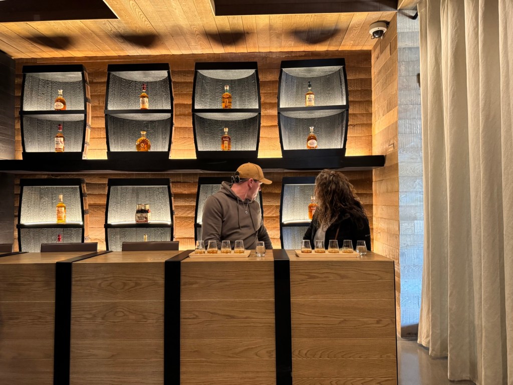 The bourbon tasing itself was straightforward as they have a small portfolio of expressions but they are still very tasty; it’s an established brand for a reason. I really liked how they used old, charred barrels as part of the display cases showcasing their various bottles on both sides of the tasting room.