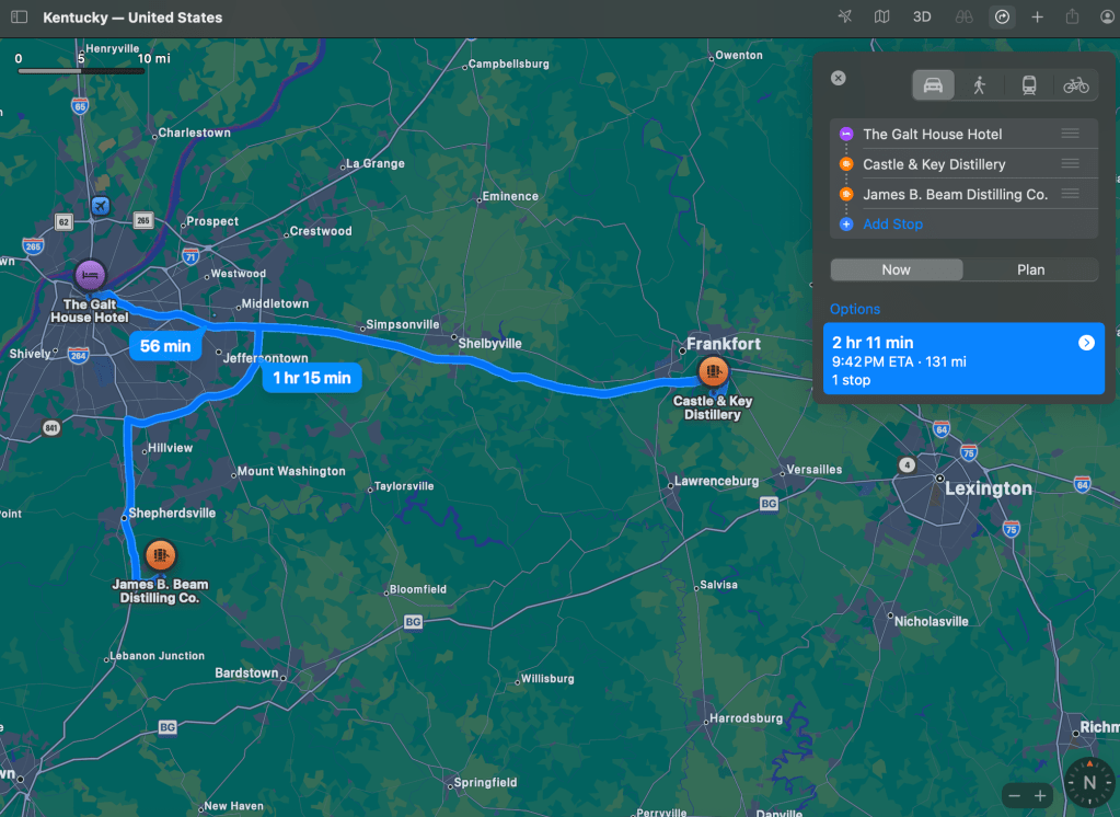 For example, if one were to stay at a premier local hotel like the Galt House in downtown Louisville, getting out to experience the grounds of the Castle & Key distillery (and taste their phenomenal gin) takes just over an hour, driving east towards the state capital of Frankfort. Whereas another big-name distillery, James Beam, is located about an hour south of downtown.