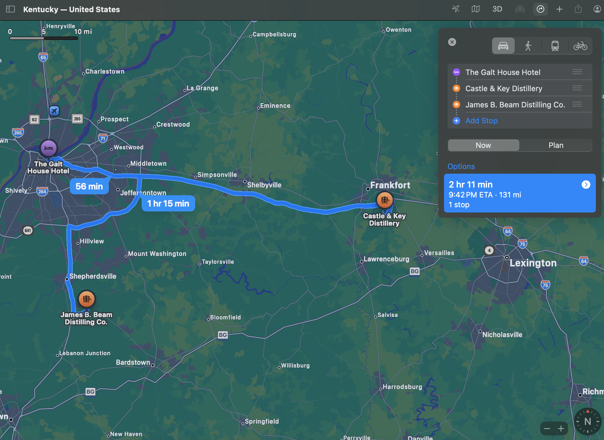 For example, if one were to stay at a premier local hotel like the Galt House in downtown Louisville, getting out to experience the grounds of the Castle & Key distillery (and taste their phenomenal gin) takes just over an hour, driving east towards the state capital of Frankfort. Whereas another big-name distillery, James Beam, is located about an hour south of downtown.